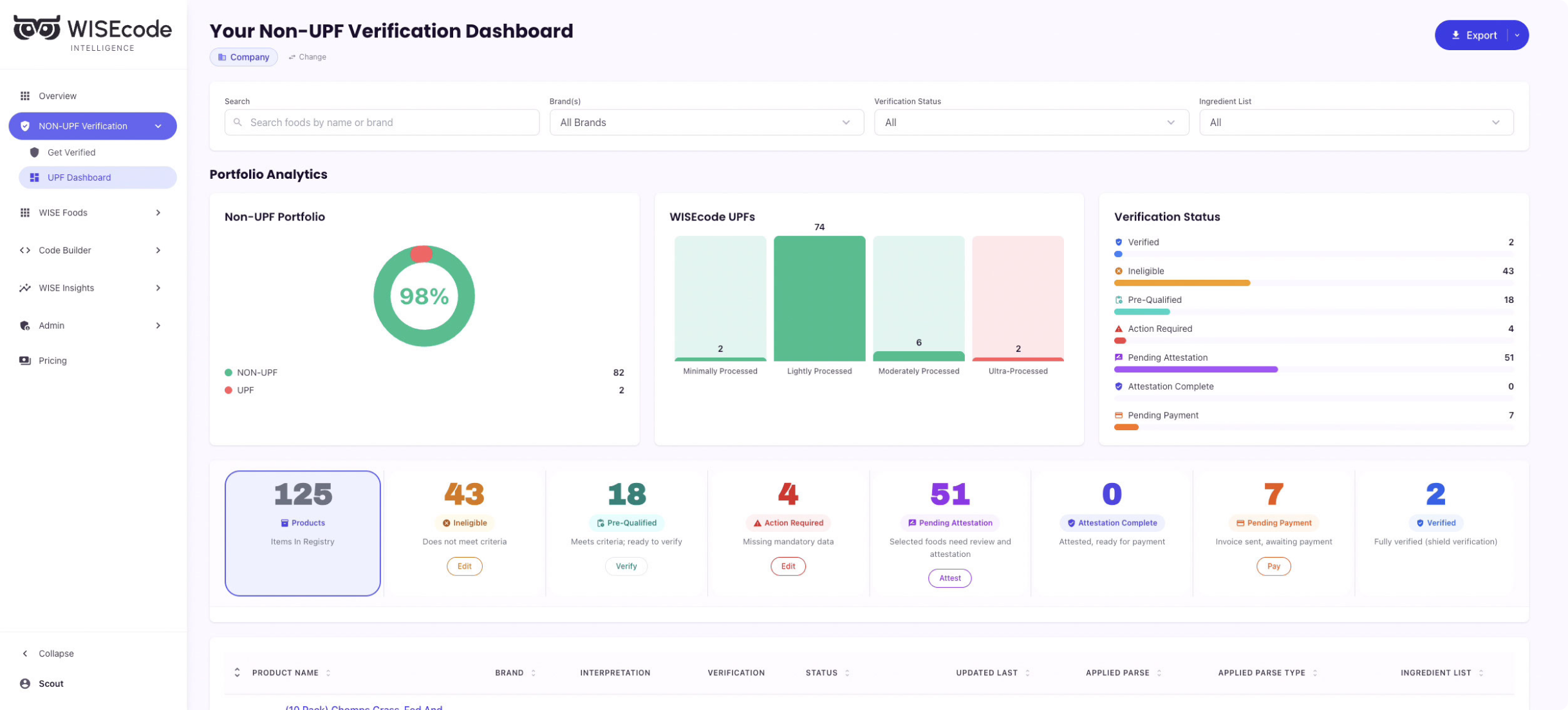 Our dashboard classifies your products at the ingredient level to assess Non-UPF eligibility. Connect with an advisor to access real-time classification data and earn the Non-UPF Shield™ for your brand.